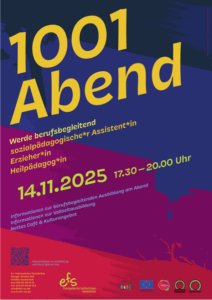 Aktuell finden Sie bei uns qualifizierte Ausbildungen für sozialpädagogische AssistentInnen (Vollzeit tagsüber oder abends / samstags), für ErzieherInnen (Voll- und Teilzeit) sowie für HeilpädagogInnen (Teilzeit). Zudem bietet der Fortbildungsbereich ein breites Spektrum an Weiterbildungsmöglichkeiten für Menschen in sozialpädagogischen Berufen. Hier geht es zu unserem neuen Fortbildungsheft. Die EFS auf Instagram: @efs_osnabrueckofficial.